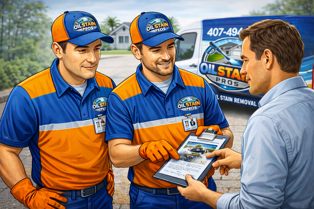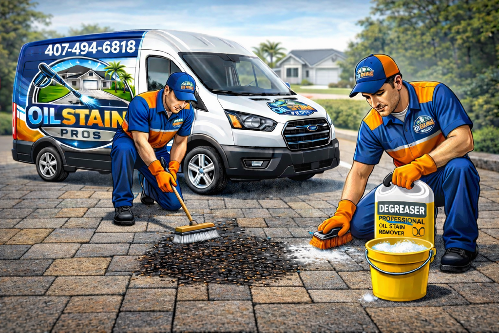 Deep, set-in oil stains removed with professional grade products
