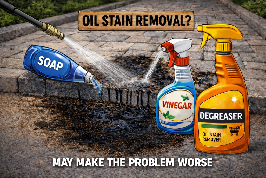 Pressure washing & cleaners will drive oil deeper & spread